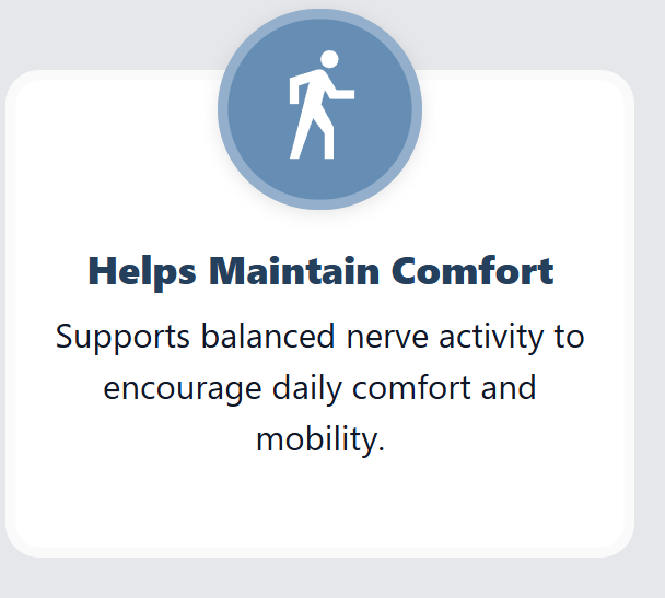 Burning feet at night · Tingling hands or toes · Electric shock sensations · Numbness or loss of feeling · Diabetic nerve pain · Restless legs · Sciatica · Poor circulation · Balance problems · Post-chemotherapy nerve damage · Cold hands and feet · Muscle weakness · Sleep disturbances · And more nerve-related discomforts.